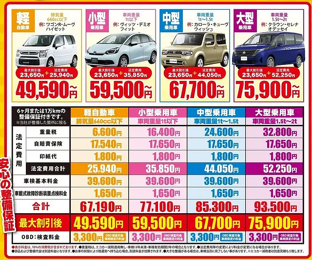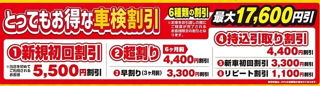 6種類の割引で車検が安くなる!!ぜひ当社にお任せ下さい。